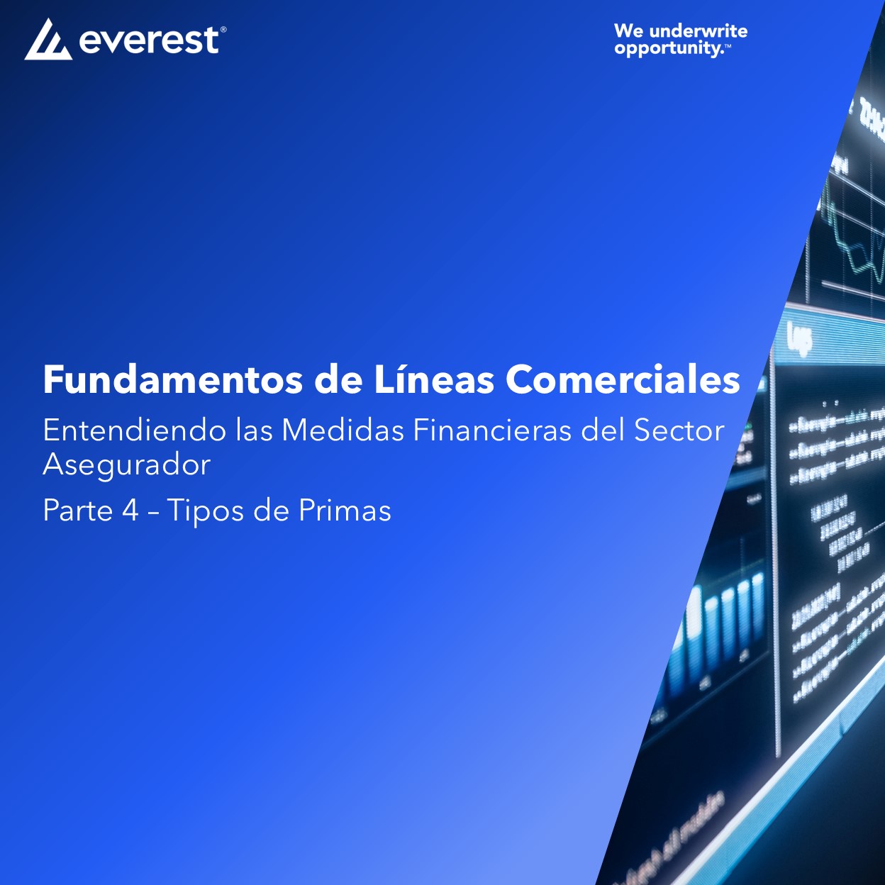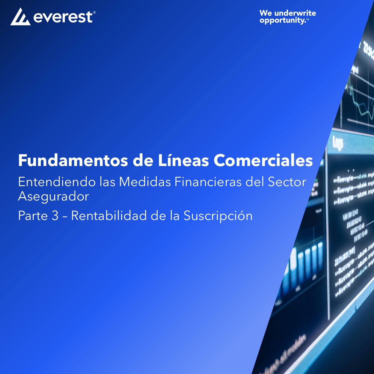 En Everest Compañía de Seguros Generales Colombia S.A., entendemos que al comenzar una carrera en la industria de seguros o en la suscripción, es esencial desarrollar habilidades fuertes y una sólida comprensión del mercado. Por eso hemos creado una ruta de aprendizaje introductoria centrada en las medidas financieras. Recomendamos revisar las partes 1, 2, 3 y 4 del curso Medidas Financieras, que ofrece una visión general del sector asegurador, los indicadores financieros clave y otros conceptos fundamentales.